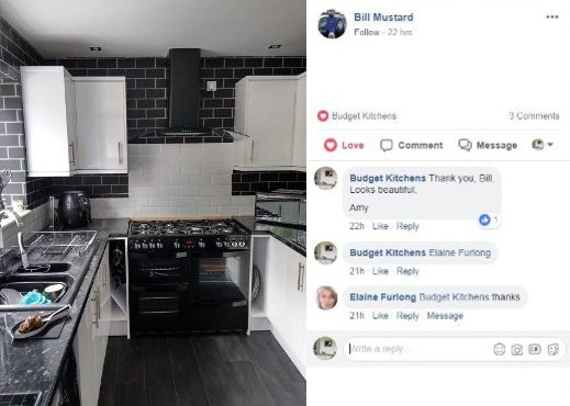 As i first time buyer being on my own i had no idea where to start but wanted a kitchen with the WOW factor but also at a reasonable price, i gave them a call and the service i received was amazing as i must of phoned twice a week as i was so indecisive on what to actually go with so helpful in terms of colours what i'd need appliances etc. They have a great range also which was very good all the staff were very knowledgeable.